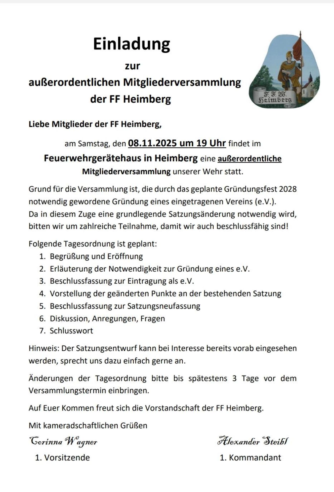 Hier ist die Einladung zur außerordentlichen Mitgliederversammlung am 8. November 2025 um 19:00 Uhr